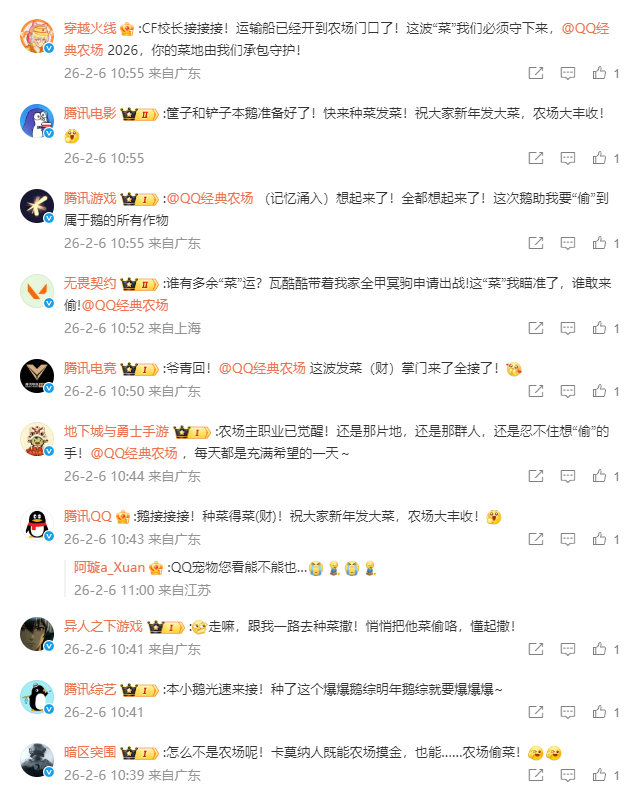 同时,游戏依托微信、QQ双端传播,适配春节团圆场景,其偷菜、浇水、驱虫的轻度互动玩法,有效抹平了新老玩家的操作鸿沟。此外,玩家还衍生出“收菜=收财”的热梗,贴合春节祈福心理,进一步放大了传播热度。