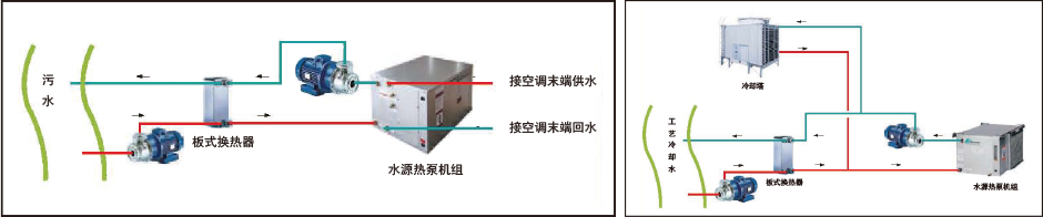 * 环保:利用污水作为冷热源,进行能量转换,减少CO2和其他大气污染物的排放, 避免冷却塔噪音及霉菌污染;